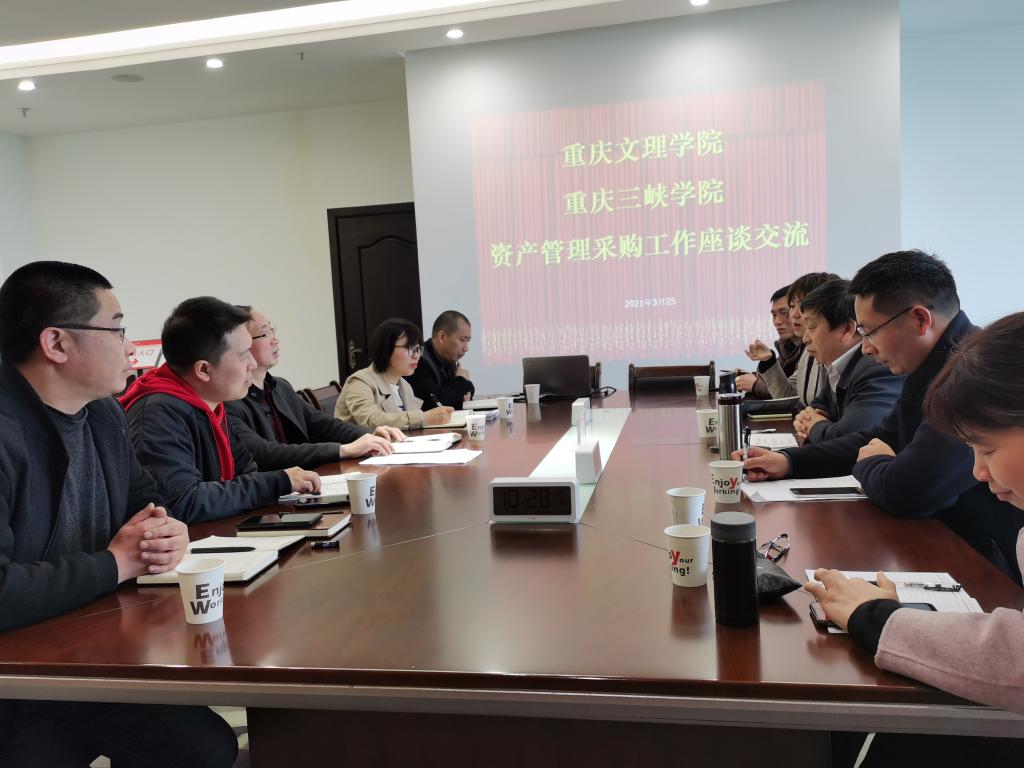 2021年3月25日,重庆文理学院mansion88明升苏兴文处长一行来我处交流,应宏处长率我处科室负责人等接待苏兴文一行,在科技楼801会议室进行了工作座谈交流。
